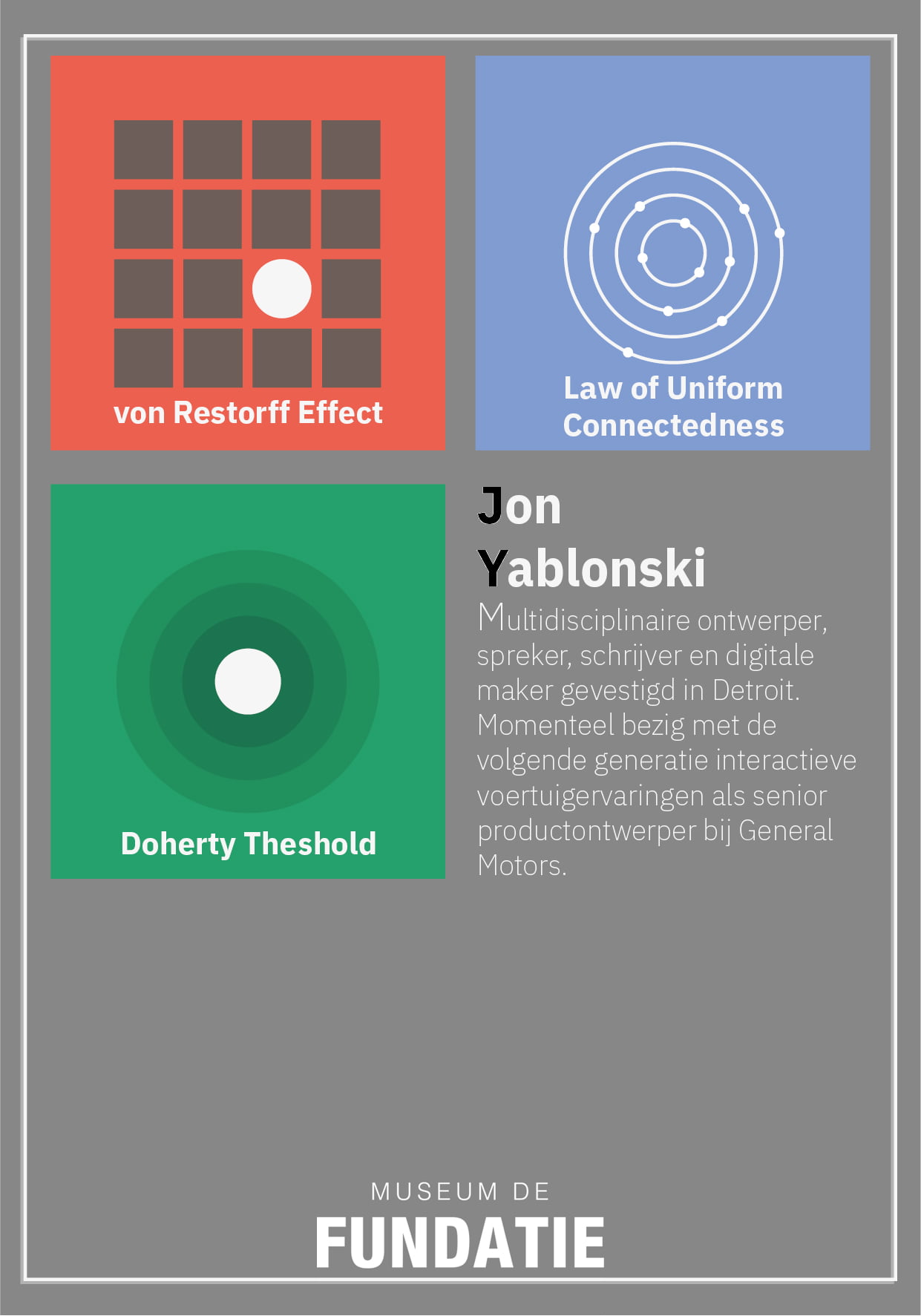 Dus met deze kennis heb ik iemand uitgekozen en ben op onderzoek uit gegaan zodat ik met zijn prachtige werk een passende ticket kon bedenken. Ik heb gekozen voor de persoon genaamd: Jon Yablonski, een Senior UX Designer met een passie voor het empoweren van mensen, door middel van digitale tools die hun capaciteiten vergroten.